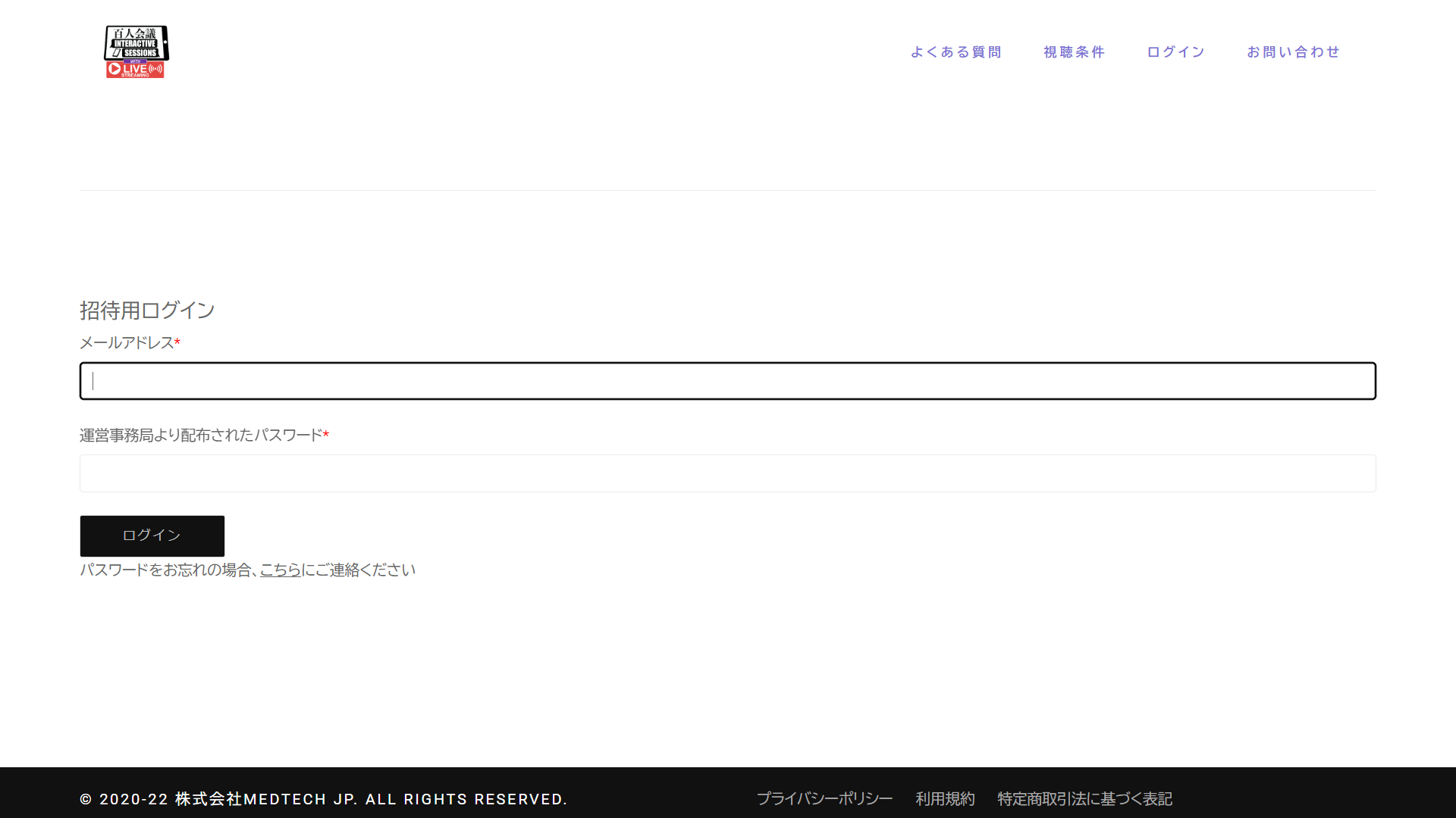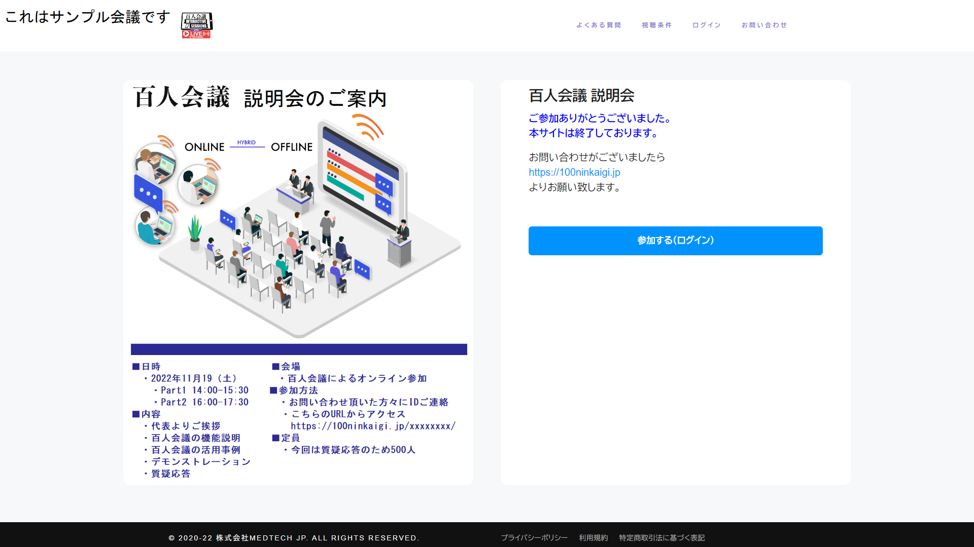 リアル・オンライン・ハイブリッド配信に対応し、複数会場での同時ライブ配信が可能です。配信機能に加えて、参加者は事前にアカウント登録をするため、会議についての連絡なども簡単に行えます。