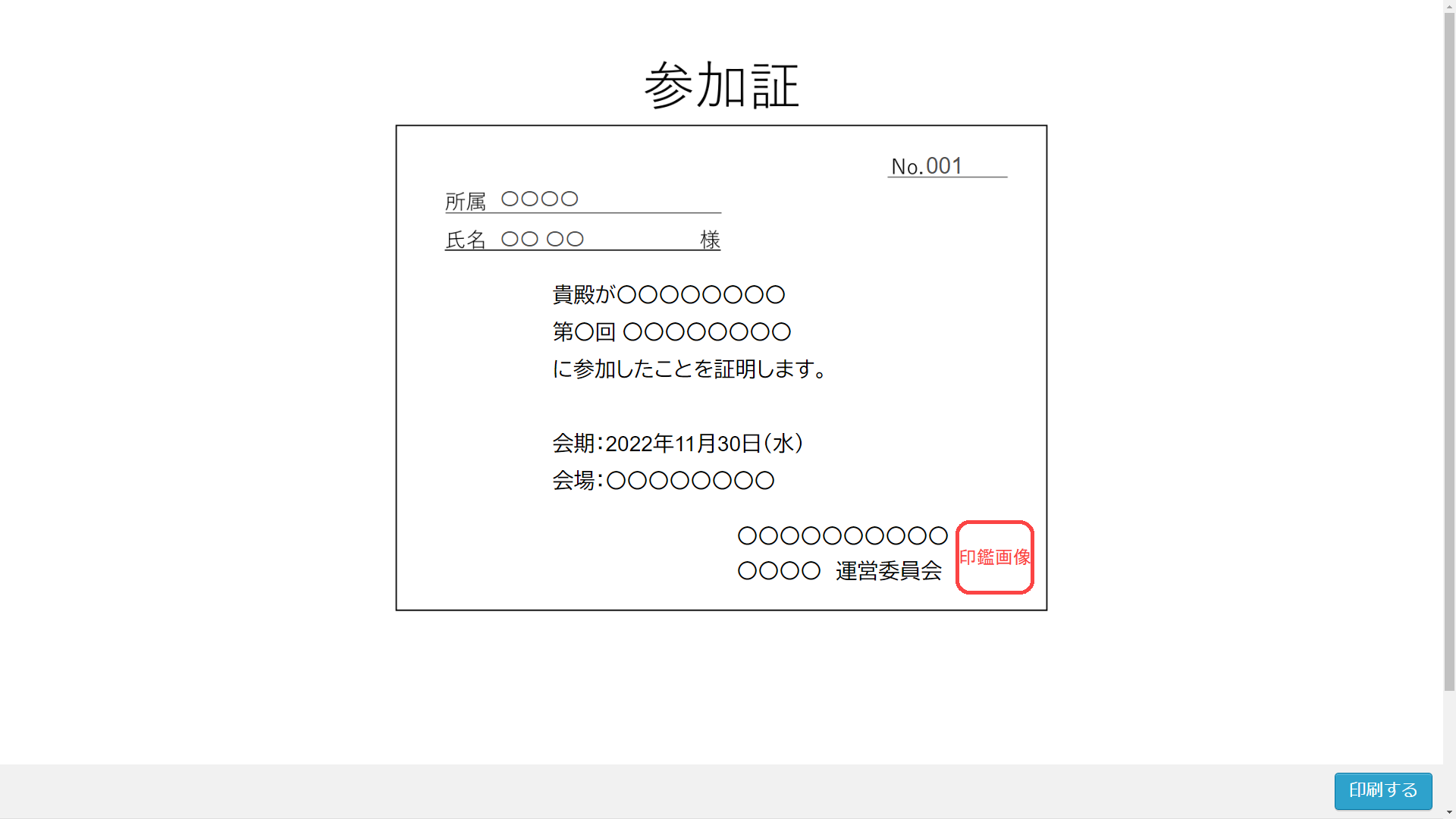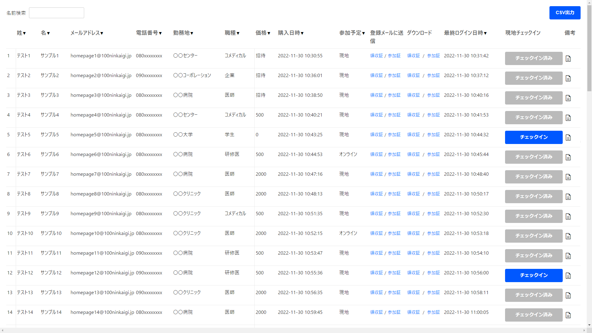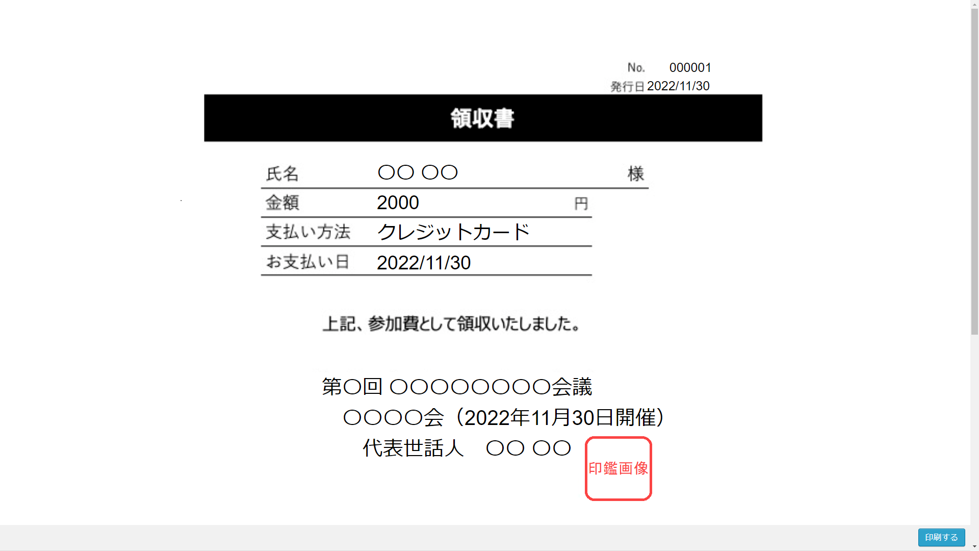 当日の参加確認をスムーズにできます。領収証や参加証の発行もできます。