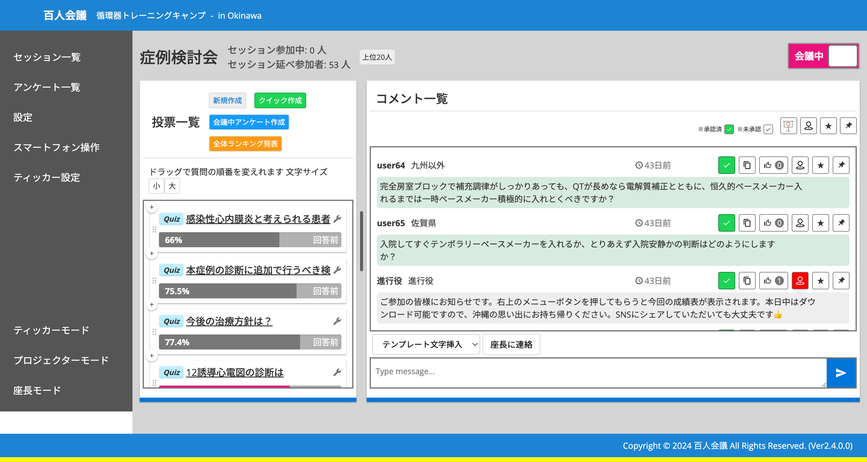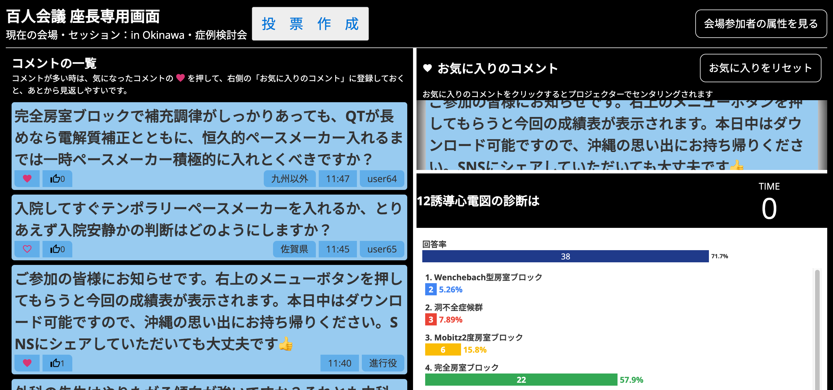座長が回答やコメントの状況を一望できます。これにより会場の雰囲気に沿った司会進行をサポートします。