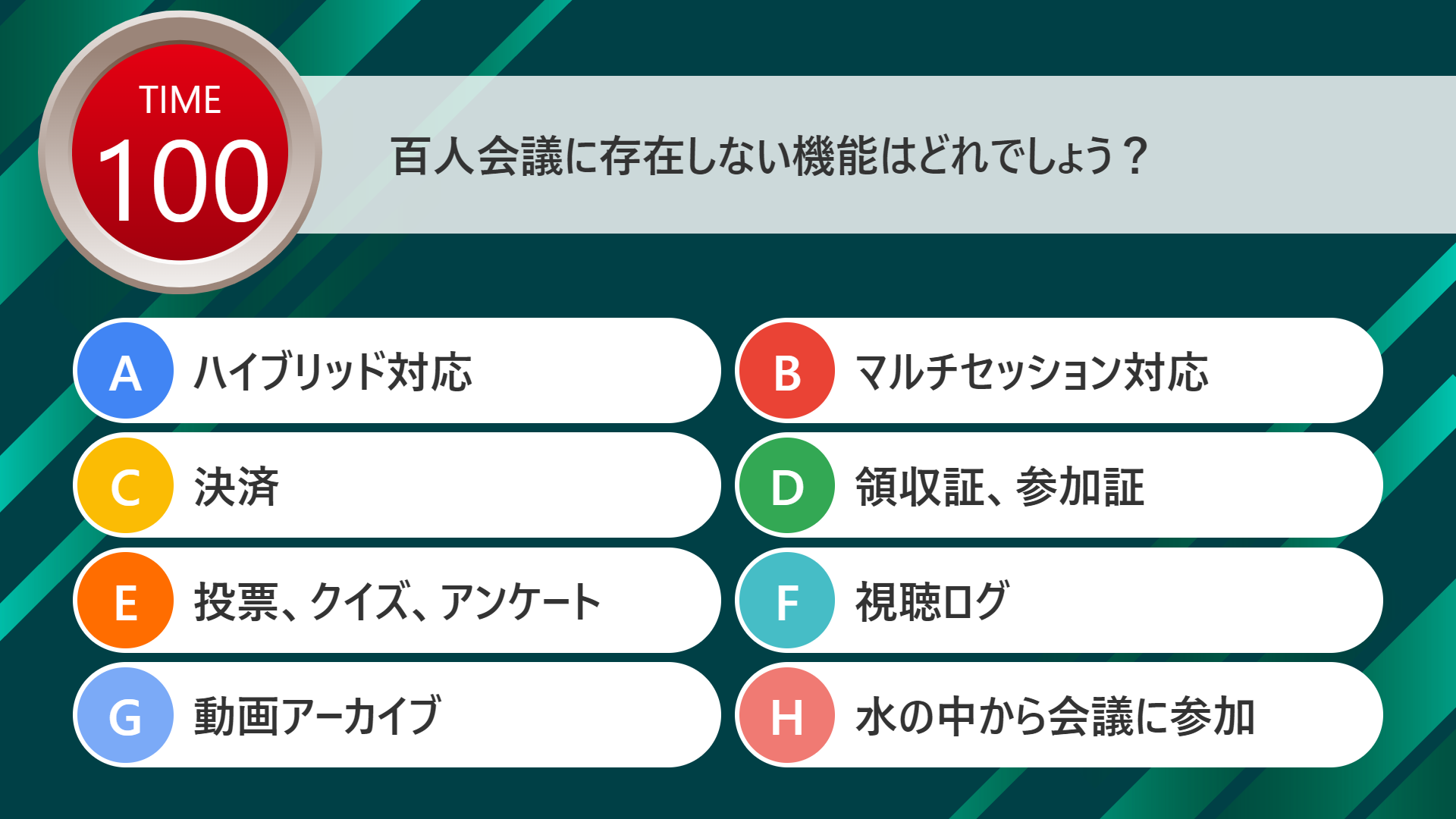 主催者が表示する投票、クイズ、アンケートに回答できます。複数選択形式など様々な回答パターンが可能です。