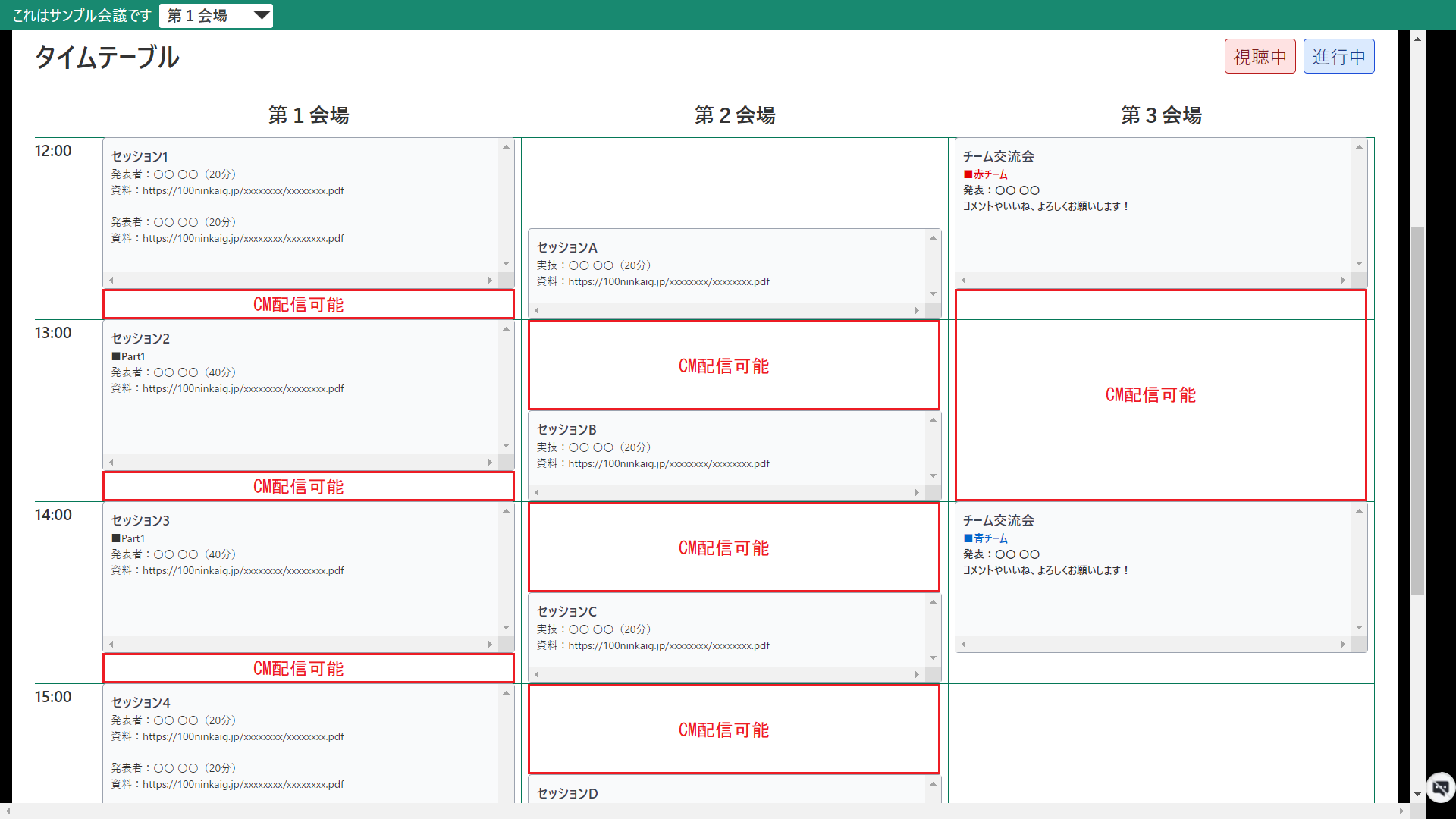複数の会場やセッションについても、同時開催およびライブ配信に対応しています。