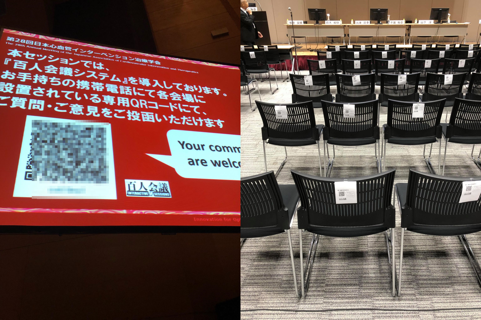 アプリのインストール不要。URLやQRコードから簡単に参加できます。会場などに設置すると効果的です。