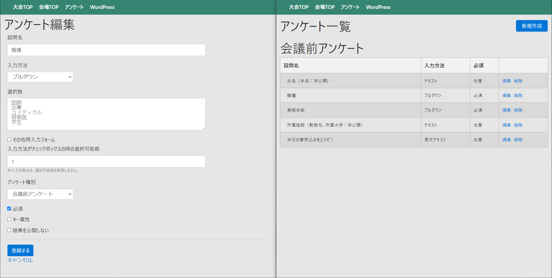 会議参加時に表示されるアンケートを設定できます。これにより参加者の属性を把握することもできます。