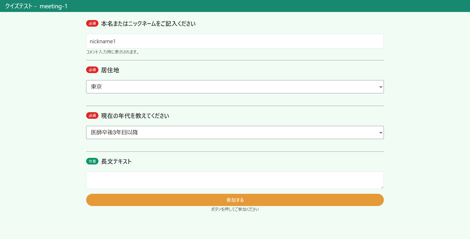 気軽にコメントができるように、ニックネームや番号での参加設定ができます。会議中の変更も可能です。