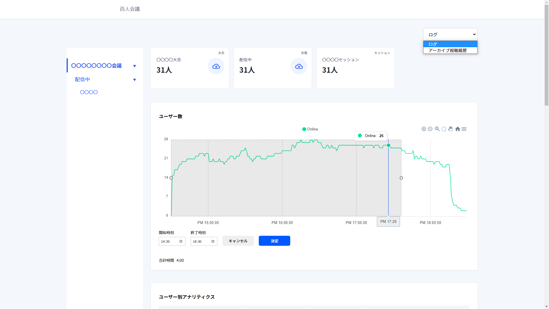 ライブ配信は視聴者毎に分単位でログを取得することができ、受講状況確認や資格付与判断などに使えます。